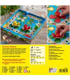 Cuatro divertidas ranas bola saltan sin parar. Van dando vueltas en torno al estanque con la suerte de los dados. Por cada vuelta completada, los jugadores pueden dar la vuelta a un pétalo de su propio nenúfar. ¿Qué...