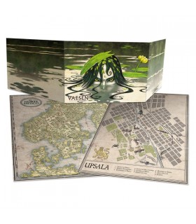 Una lujosa pantalla para el máster en formato apaisado para Vaesen: el juego de rol de horror nórdico. El lado exterior está decorado con ilustraciones de Johan Egerkrans, mientras que el...