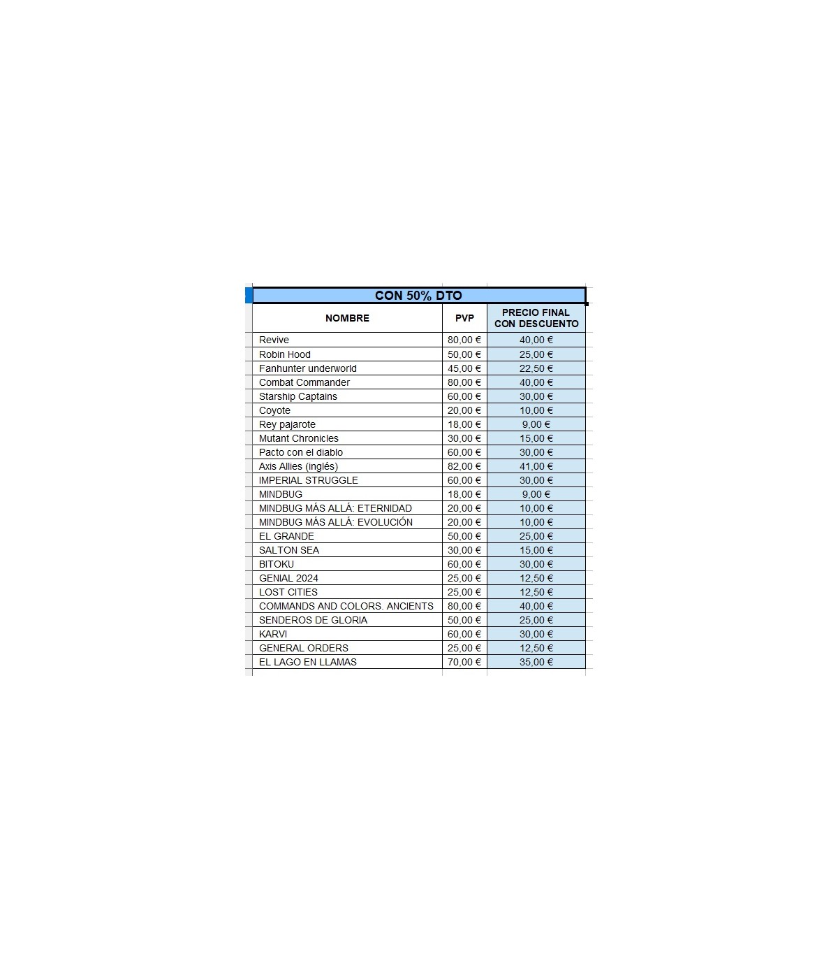 En la imagen podéis ver la lista de juegos con el 50% de descuento
