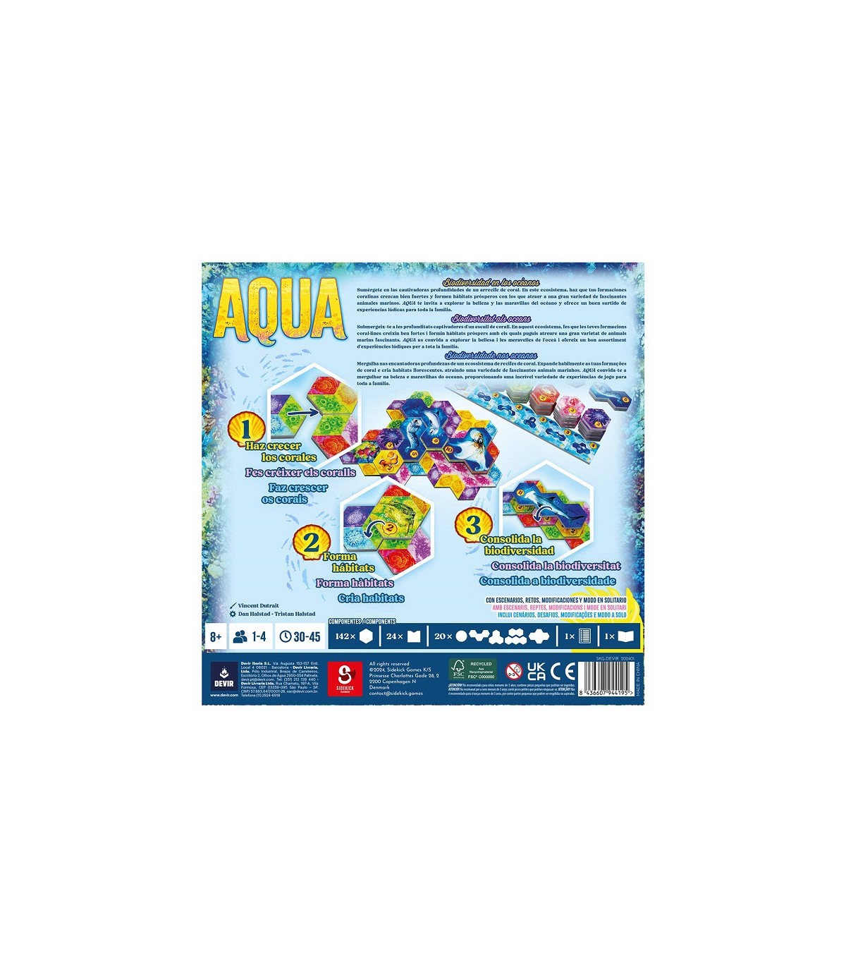 ¡Sumérgete en las cautivadoras profundidades de un arrecife de coral! En este ecosistema, haz que tus formaciones coralinas crezcan fuertes y formen hábitats prósperos con los que atraer a una gran variedad de fascinantes animales marinos. AQUA te invita a explorar la belleza y las maravillas del océano y ofrece un buen surtido de modos de juego para toda la familia.