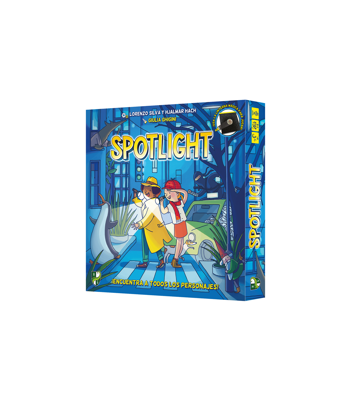 Spotlight es un juego cooperativo en el que todo el mundo colabora para descubrir tantos personajes ocultos como sea posible. Jugad 5 rondas, ayudaos mutuamente ¡y aseguraos de que nadie llega a casa demasiado tarde!