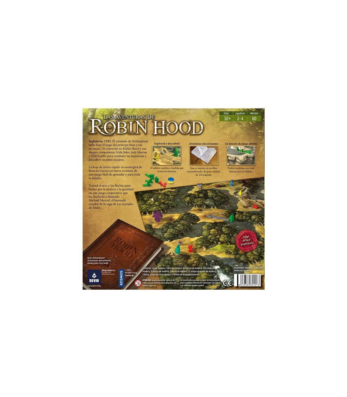 Ambientado en la Inglaterra de 1193, Las aventuras de Robin Hood es un juego totalmente inmersivo que gustará tanto a los jóvenes como a los adultos que disfrutan con una buena historia. ¿Os alzaréis contra la tiranía que imponen el príncipe Juan y el sheriff de Nottingham? De vuestras acciones dependerá la evolución del tablero y el desenlace de la historia. ¡Preparad los arcos, guerreros!