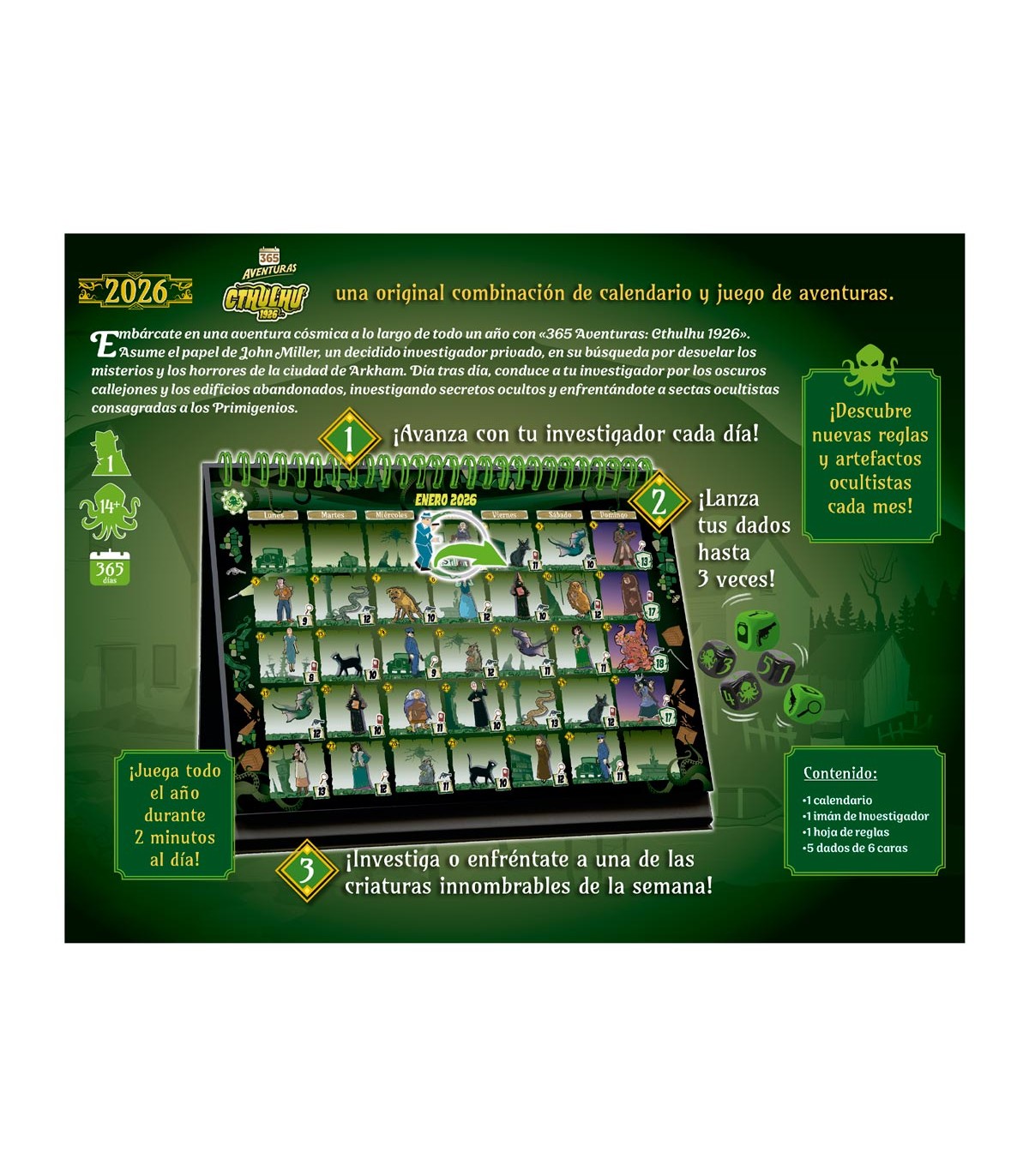 Embárcate en una aventura cósmica a lo largo de un año. Asume el papel de John Miller, un decidido investigador privado, en su búsqueda por desvelar los misterios y los horrores de la ciudad de Arkham. Día tras día, conduce a tu investigador por los oscuros callejones y los edificios abandonados, investigando secretos ocultos y enfrentándote a sectas ocultistas consagradas a los Primigenios.