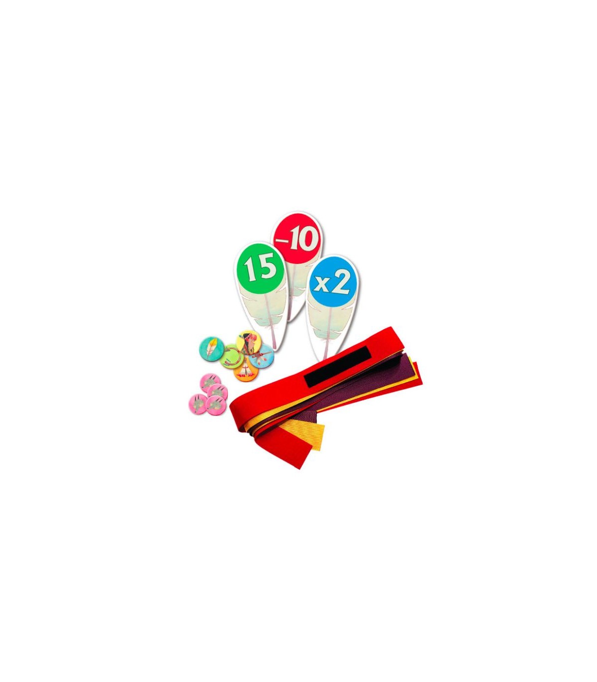 En Coyote, los participantes se meten en el papel de los indios y deben ponerse una cinta en la cabeza con una "pluma" numerada. El objetivo es adivinar la suma de los valores de todas las "plumas" ¡sin conocer el valor de la tuya! ¡Quien falle será todo un coyote!