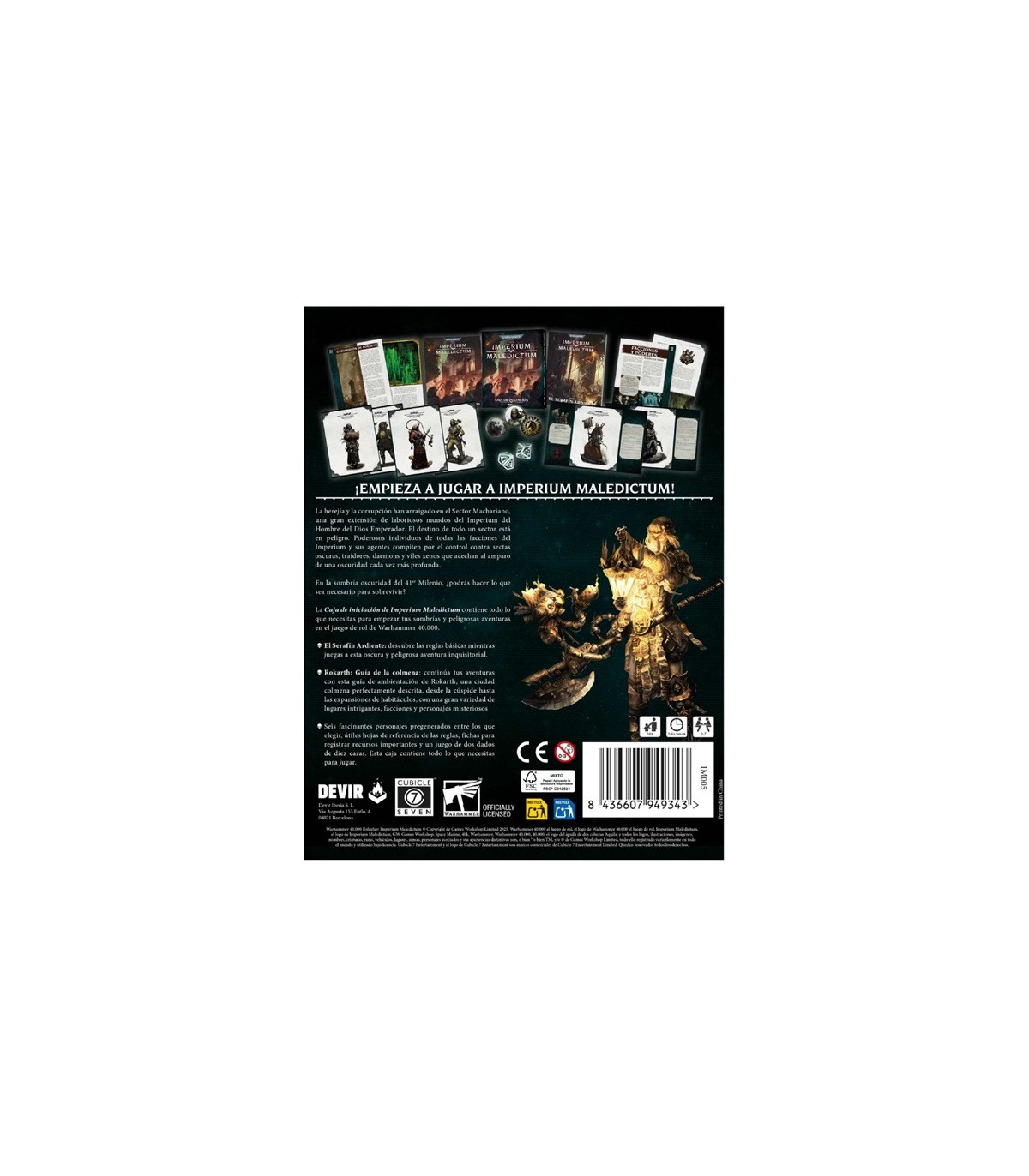 Warhammer 40.000: Imperium Maledictum - Caja de Inicio es un juego de rol de Warhammer 40,000 ambientado en el glorioso Sector Macharian, un sector forjado a sangre y fuego en los mil mundos conquistados por Lord Solar Macharius.