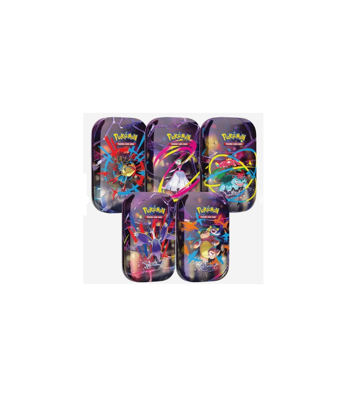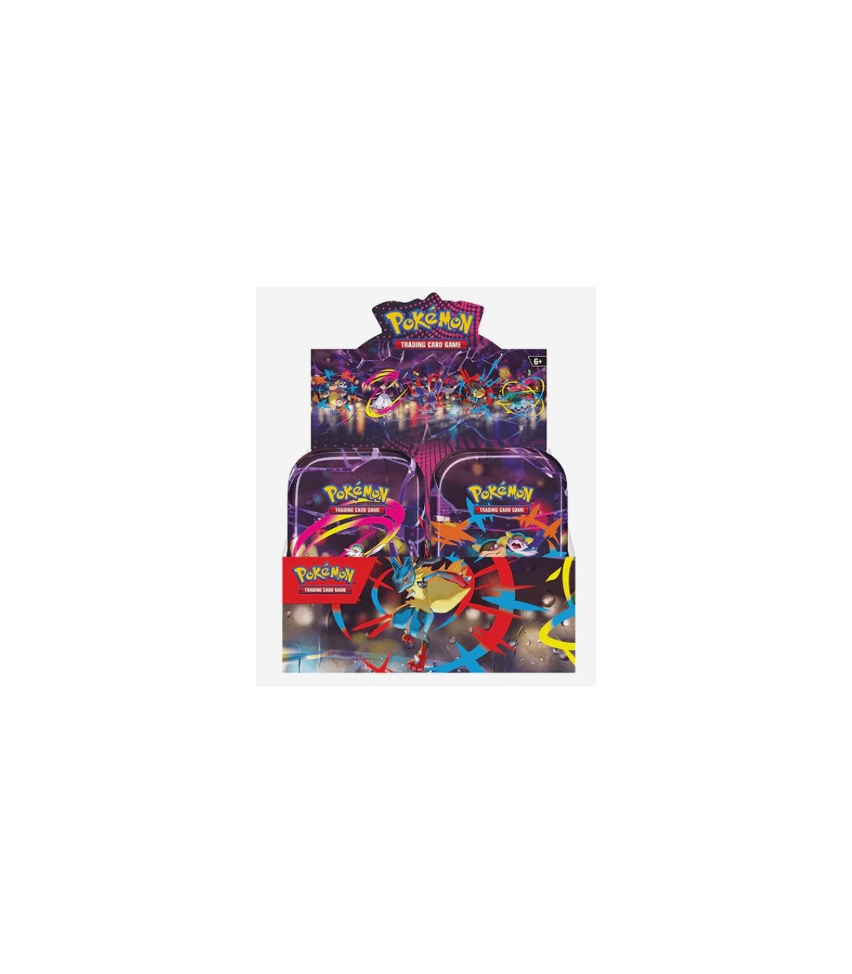 - 10 mini tins (cada mini tin contiene 1 sobre Pokémon Mega Evolution y 1 sobre Destinos rivales, además de una hoja de pegatinas)